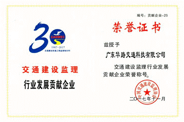 1、华路公司获评《交通建设监理行业发展贡献企业》(共评33家);