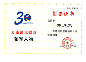 2、华路公司陈少文董事长/党委书记获评十大《交通建设监理领军人物》(仅评10名);