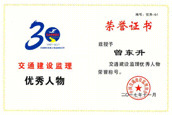 3、华路公司曾东升同志获评《交通建设监理优秀人物》(共评84名);