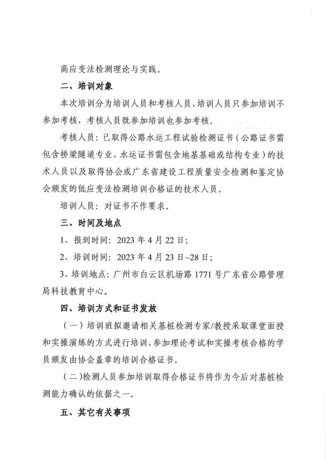 关于举办广东省2023年度公路水运工程基桩高应变法检测培训班的通知
