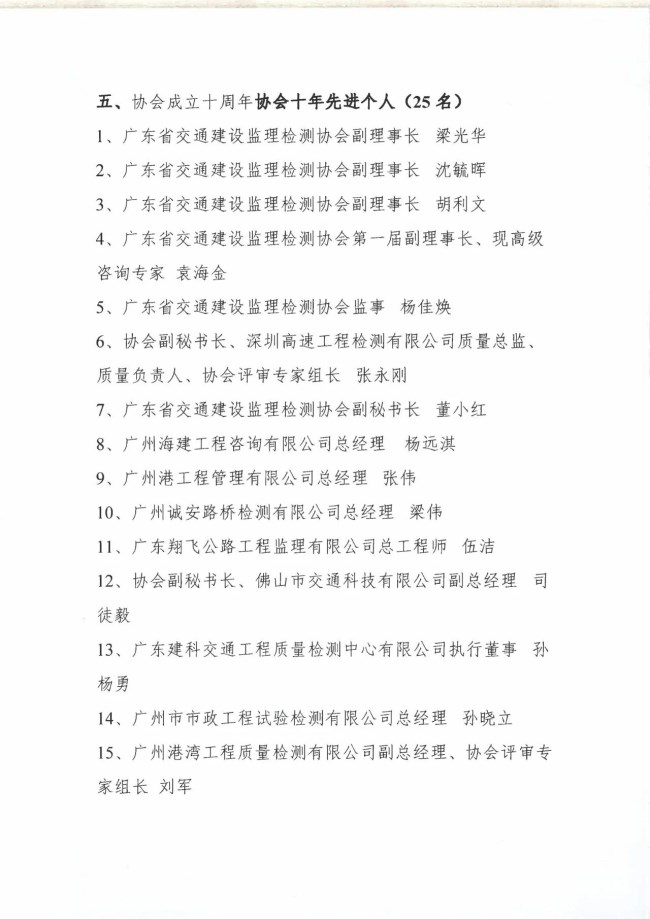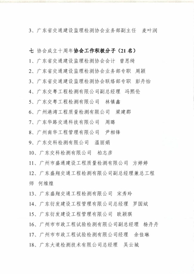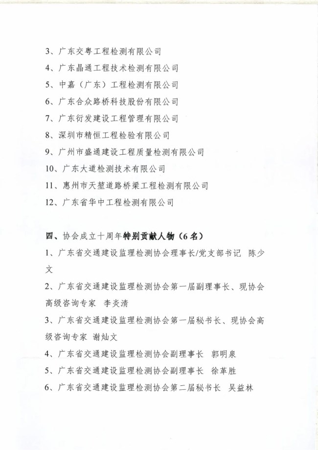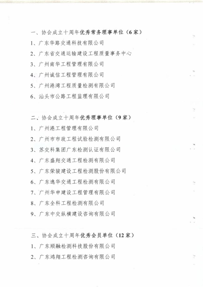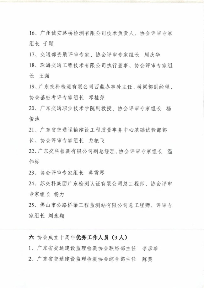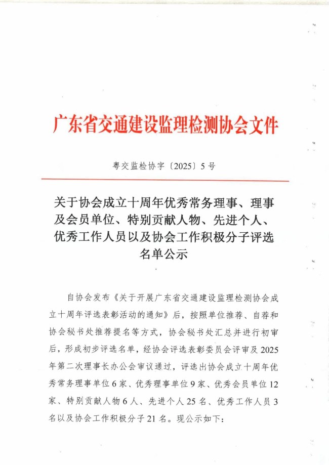 广东省交通建设监理检测协会优秀常务理事、理事及会员单位、特别贡献人物、先进个人、优秀工作人员以及协会工作积极分子名单公示