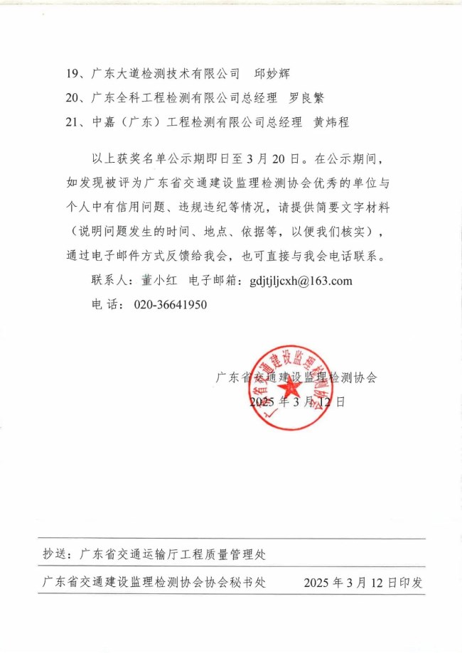 协会秘书处 发表时间:2025-03-12 21:16:00 来源:广东省交通建设监理检测协会