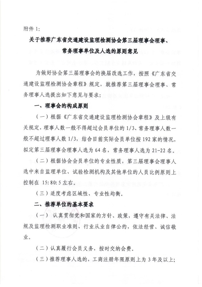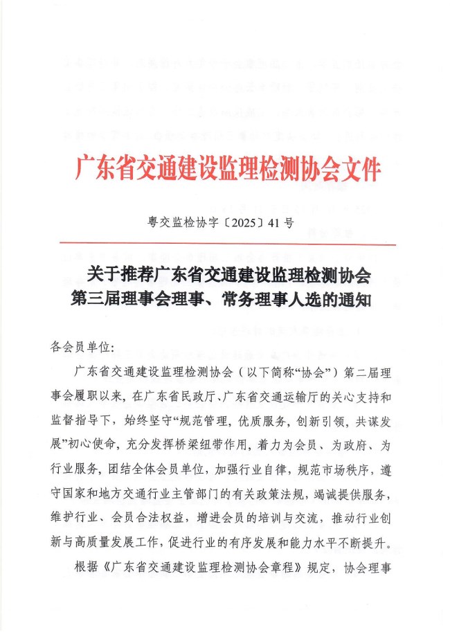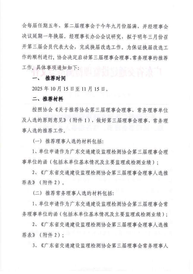 关于推荐广东省交通建设监理检测协会第三届理事会理事、常务理事人选的通知