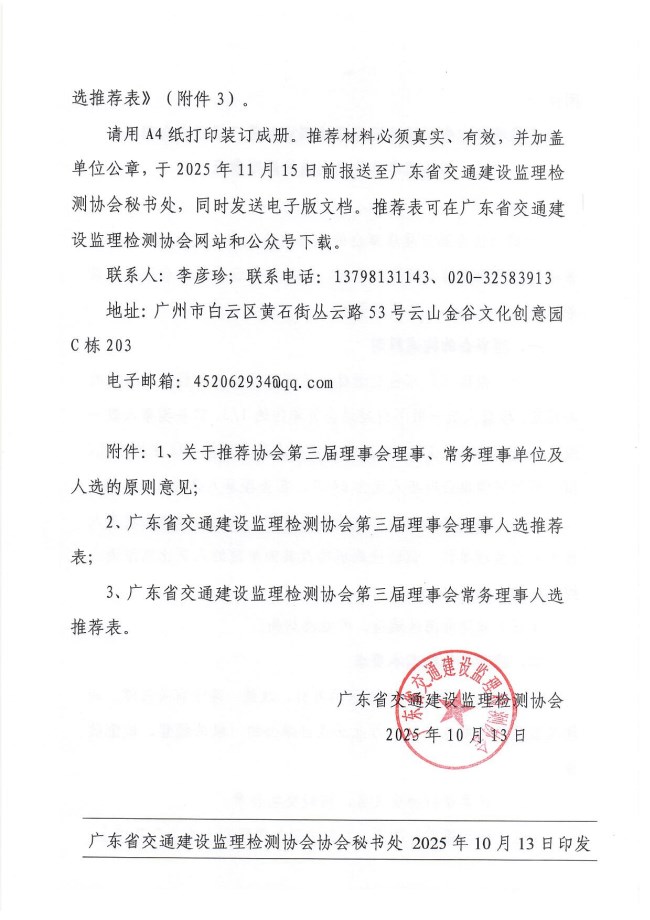 关于推荐广东省交通建设监理检测协会第三届理事会理事、常务理事人选的通知.pdf