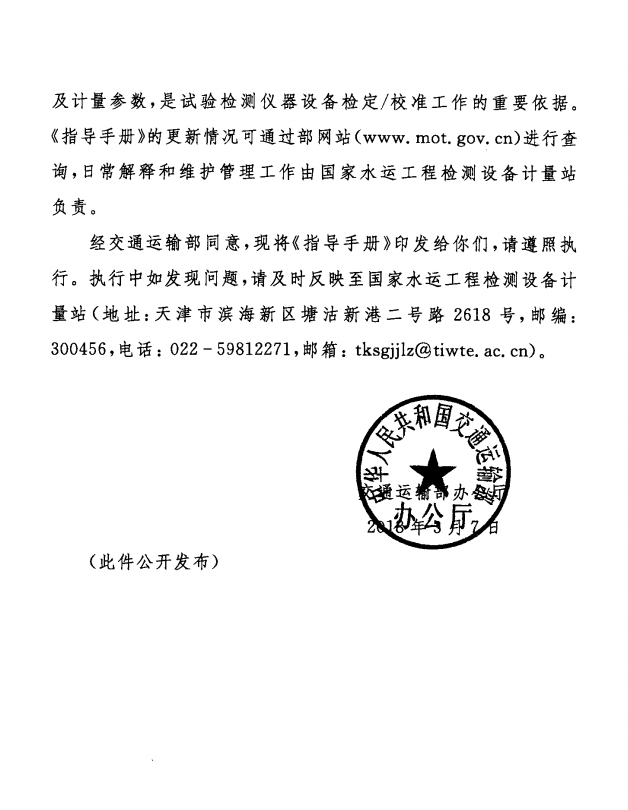 交办安监[2018]33号 交通运输部办公厅关于印发《水运工程试验检测仪器检定 校准指导手册》