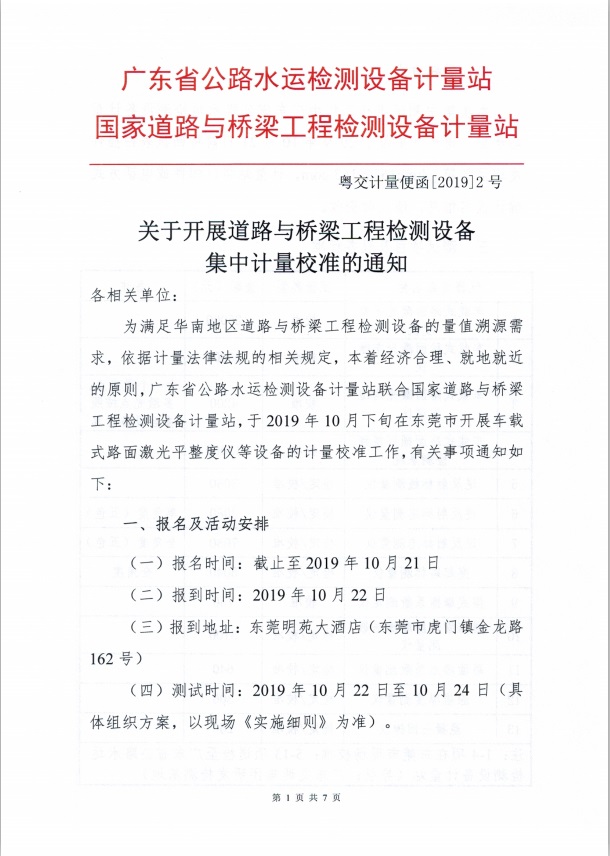 关于开展道路与桥梁工程检测设备集中计量校准的通知