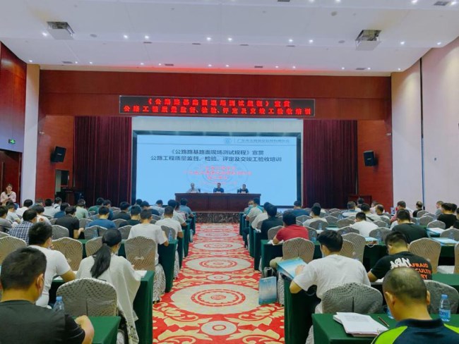 2020年9月28-29日,由广东省公路学会、广东省交通建设监理检测协会联合举办的《公路路基路面现场测试规程》以及公路工程质量监督、检验、评定及交竣工验收宣贯培训班在广州华泰宾馆成功举办。全省130余位从事公路工程质量监督、检验检测工作及其相关工作的技术人员参加宣贯培训。