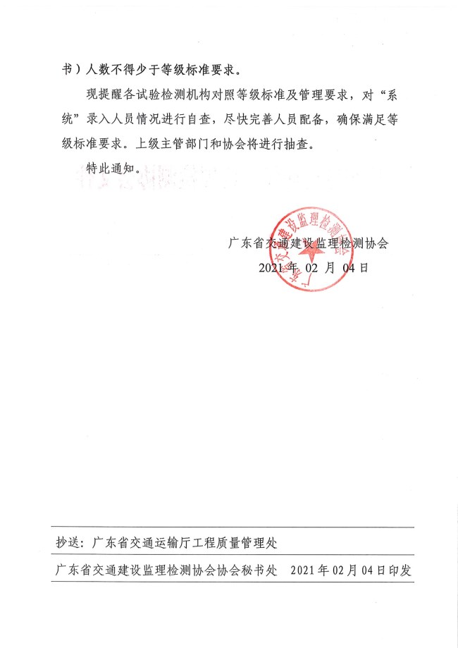 协会秘书处 发表时间:2021-02-04 12:14:00 来源:广东省交通建设监理检测协会