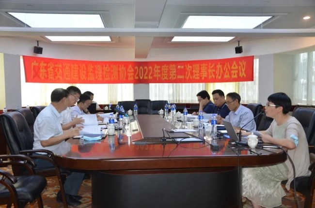协会顺利召开2022年第二次理事长办公会议 2022年6月23日广东省交通建设监理检测协会2022年第二次理事长办公会议在广州顺利召开,协会陈少文理事长、郭明泉、徐革胜、梁光华、沈毓晖、胡利文副理事长,监事杨佳焕及协会秘书处人员等9人参加了此次会议,会议由陈少文理事长主持。 (陈少文理事长主持会议) 会上听取了协会上半年工作情况总结,讨论部署了下一阶段重点工作,听取了秘书处有关协会社会组织评估准备工作汇报,并重点就更好加强协会建设和开展等级评估工作等研究相关措施,汇报了协会新会员入会申请情况。 最后,陈少文理事长作会议总结,肯定协会上半年工作成效,感谢协会各位领导及秘书处同志们所做的工作。对下一步的工作,要求按年度计划目标及此次会议的工作部署,共同努力扎实抓好各项工作,尤其是落实好加强协会建设和做好评估准备的各项措施,希望各位协会继续全力支持协会工作,戮力同心提升协会工作活力和工作成效。