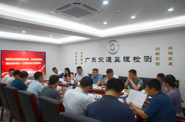 湖南省质安局、交通监理及检测协会领导到我会调研交流 5月29日至31日,湖南省交通建设质量安全监督管理局党委委员/副局长彭祖祥带领湖南交通质监局、湖南交通监理协会及湖南交通检测协会一行9人到我会及相关企业调研交流。广东省交通运输厅质量管理处刘永忠处长、邱志宾一级调研员,协会领导陈少文、郭明泉、徐革胜、胡利文、谢灿文,广州市道路研究院有限公司李炎清董事长、广州南华工程管理公司刘芝刚书记、广东华路交通科技有限公司严明纪委书记,以及广东交科检测、交科研发公司等有关单位负责人参加了相关活动。双方就两省交通建设情况、质量监督管理、监理检测企业改革发展等内容进行了交流与讨论。并到研发检测基地参观考察了公路交通安全应急保障技术及装备交通运输行业研发中心(广州)、交通集团高速路网节点桥梁营运安全集群监测系统等。
