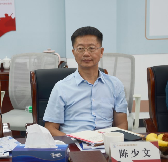 (彭祖祥副局长发表讲话) 陈理事长表示,热烈欢迎湖南省以彭局长带队的各位领导来广东省协会传经送宝。他简要介绍了广东在积极探索和实践监理改革方面的相关情况。提出面对行业新形势、新要求,两省协会需要加强交流互动,共同积极探索协会建设与企业创新发展之路,推动监理和检测行业高质量发展。