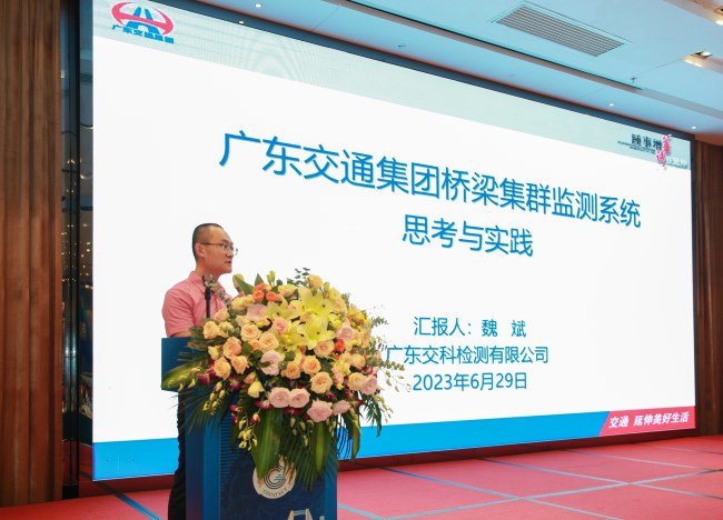 广东交科检测有限公司副总工、高级工程师魏斌作《广东交通集团桥梁集群监测的思考与实践》交流分享