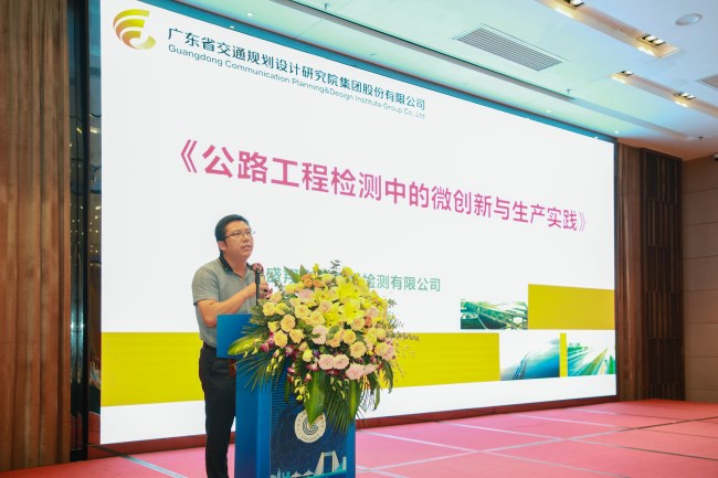 广东盛翔检测有限公司副总经理、总工程师、高级工程师何惟煌作《公路工程检测中的微创新与生产实践》交流分享