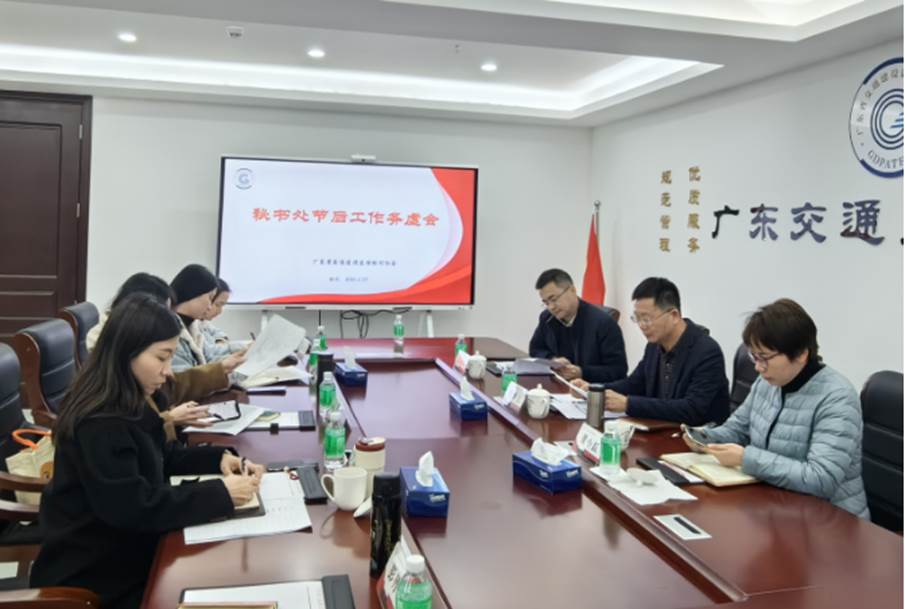2月28日下午,协会在云山金谷202会议室召开广东省交通建设监理检测协会秘书处节后工作务虚会,协会理事长、党支部书记陈少文,秘书长吴益林、副秘书长董小红以及秘书处全体工作人员参加了会议。 会议由陈少文理事长主持。