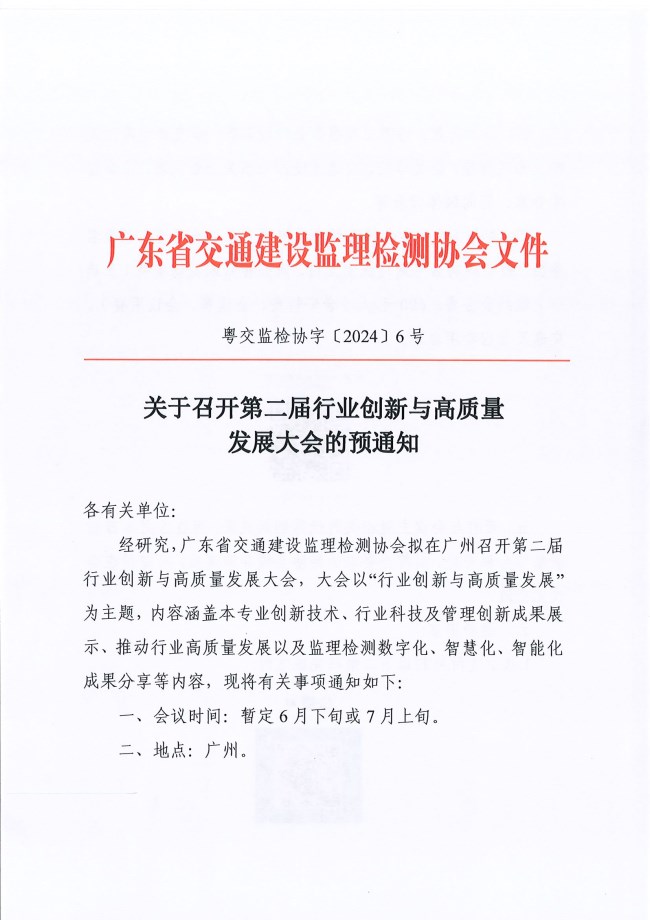 关于召开第二届行业创新与高质量发展大会的预通知【粤交监检协字 [2024] 6号】.pdf